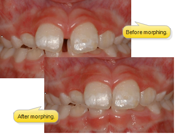 Use Image Morph tools to cosmetically manipulate images. This feature is especially useful for cleaning up patient photos, sharpening the details of x-ray images, and showing patients the potential results of orthodontic treatment.
