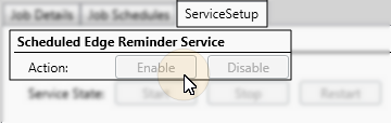 Use the Service Setup tab of your Scheduled Jobs Setup editor to configure the workstation(s) that you want to use for sending automated Edge Reminder messages, and review the dates and times message sets have been processed.