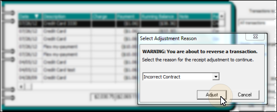 Click Adjust to confirm your action, or click Cancel to exit without completing the reversal.