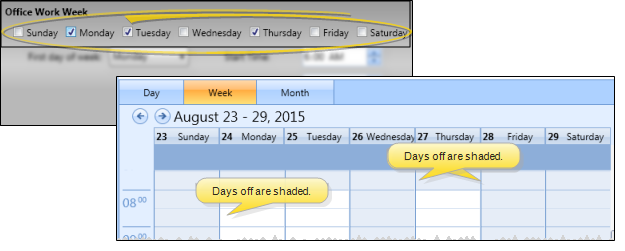 - Check each day of the week that you generally see patients. Days you disable will appear shaded in the Week and Month views of your HR Manager calendar.