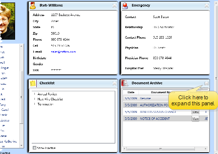 Expanded / normal view - You can display the active panels in either normal or expanded view. When in normal view, all panels are given the same amount of screen space. When in expanded view, a single panel is given the maximum amount of space, and all other panels are collapsed. To work in expanded view, click the box at the upper-right corner of the panel you want to work with, or double-click the panel header. To return to normal view, double-click the expanded panel header again. Note that certain information and features are available in expanded view only.