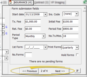 Choose Insurance Detail to Work With Since each insurance detail record is associated with a single treatment phase and a single contract, it is very common for a patient to have multiple records. The Insurance tab at the top of the patient folder window indicates the number of insurance detail records assigned to the patient. When a patient has multiple insurance detail records, use the <<Previousand Next >> buttons at the bottom of the window to move among them.