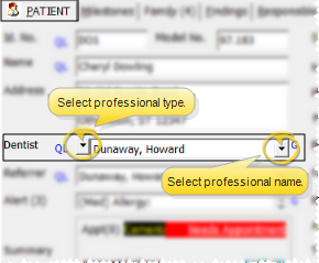 Dentist / professional fields - Enter the names of the professionals that work with your patients. This information provides a way for you to easily generate correspondence, and collect data for your practice reports.