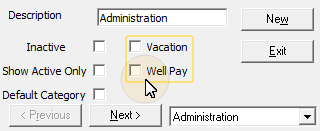ViewPoint main menu > System Tables > System > Timeclock Categories.
