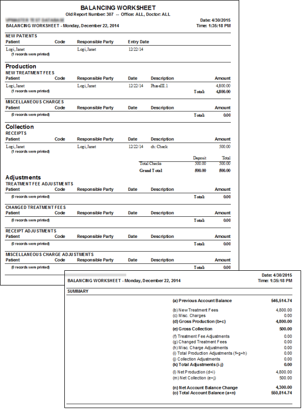 Run the Balancing Worksheet to obtain an audit trail of new patient records, production, collection, and adjustment