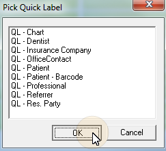Select label type - Choose the type of label you want to work with. Note that you can set up each type of Quick Label to include different types of information.