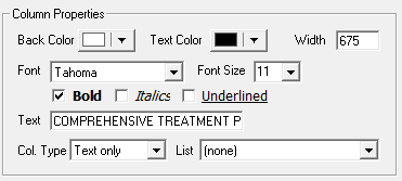 The Text Only column type requires that you type (or copy & paste) text into the column. In addition, if you edit a patient's tooth chart while a Text Only or List and Text treatment chart column is active,