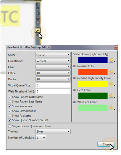 Settings option on the light bar tool panel to select which orthodontist / office to view, and to set up how the light bar appears on your screen.